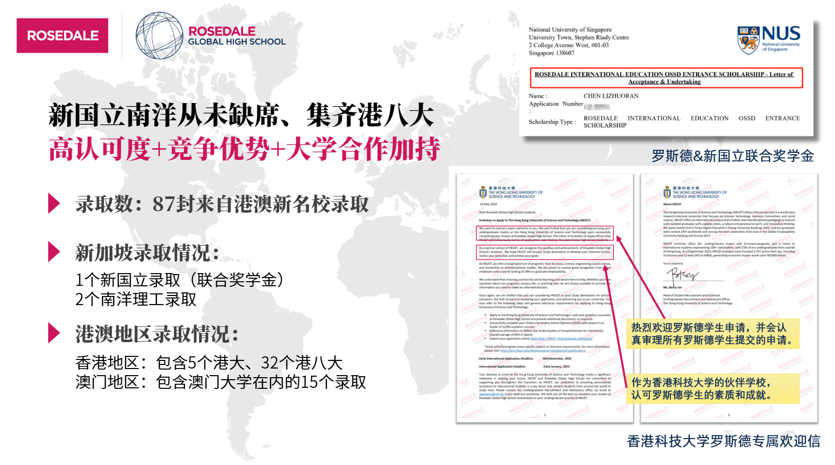 港澳新留學近年來是一年比一年火爆、競爭也是一年比一年激烈。在這樣的情況下,羅斯德學生的申請競爭力依舊十分強勢: