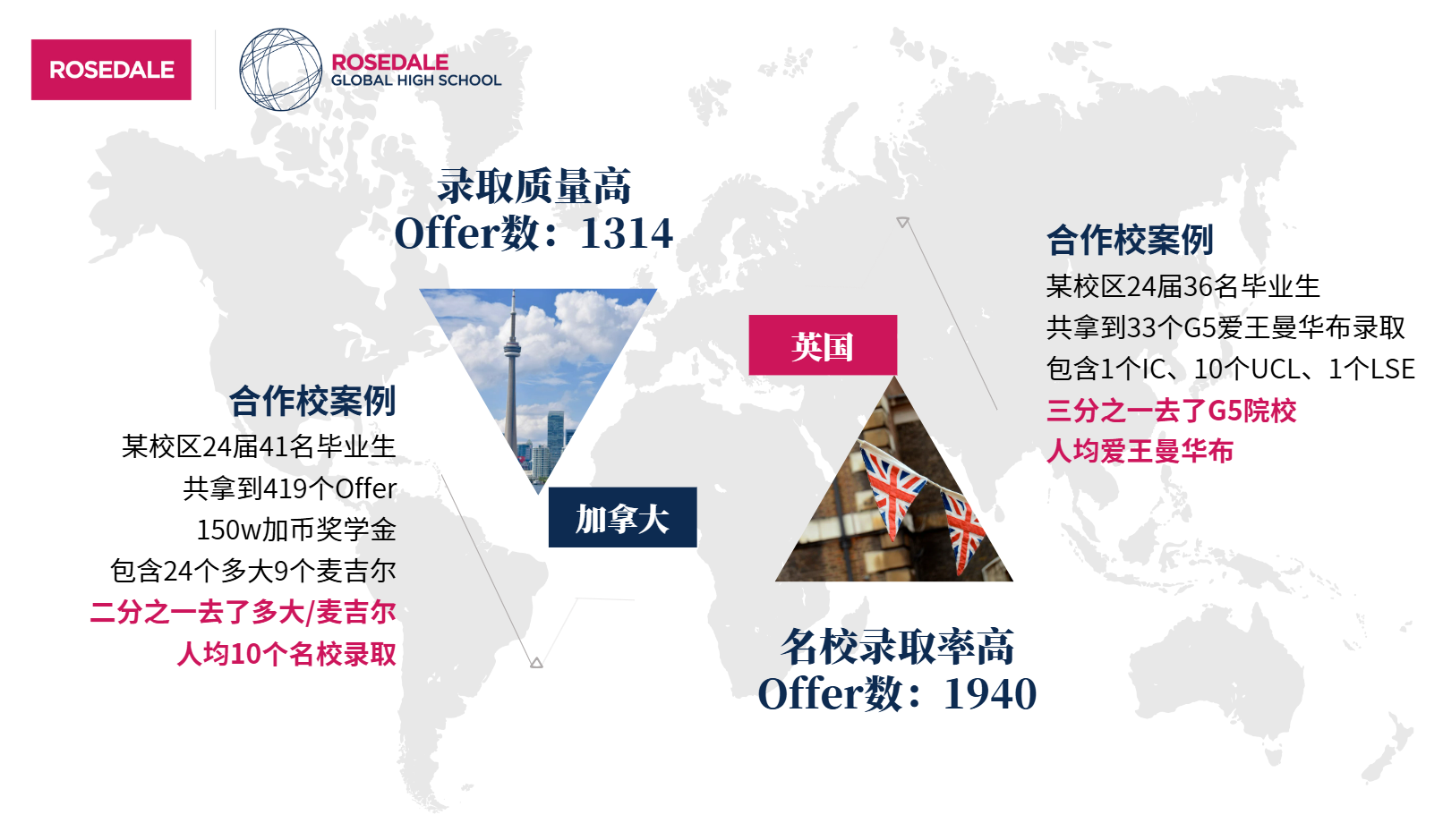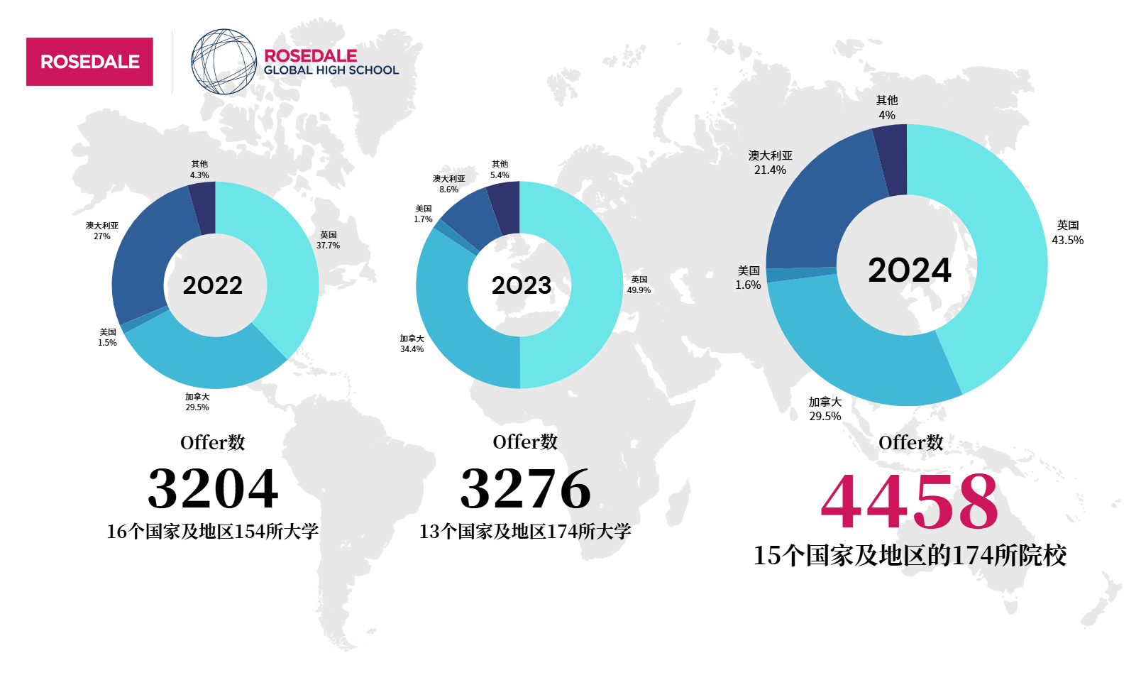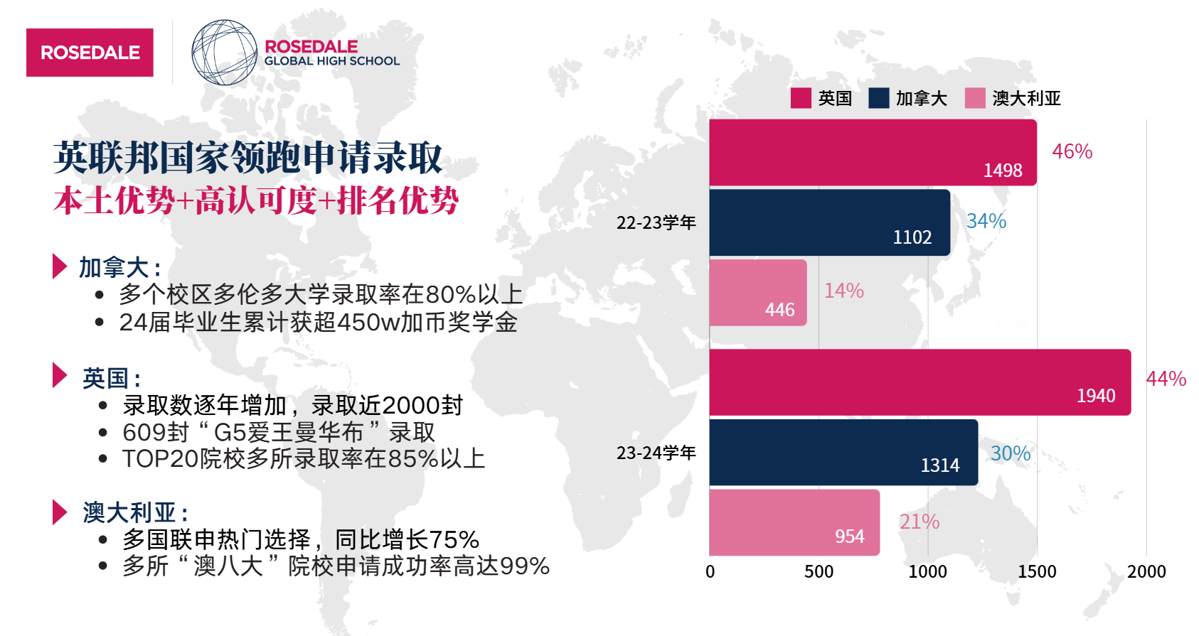 以英加澳為代表的英聯邦國家一向是羅斯德全球高中學生的申請“統治區”,錄取連年增長: