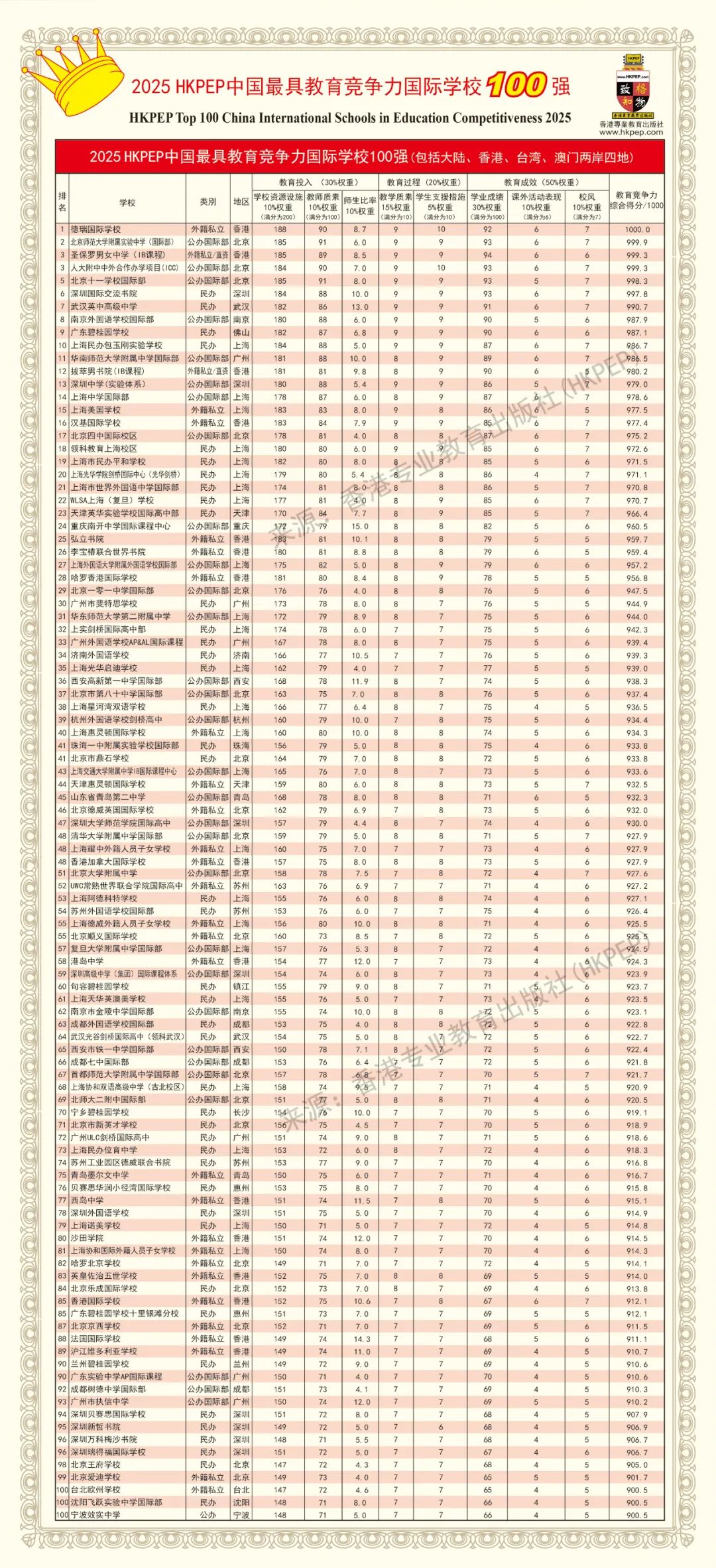 2025HKPEP 中國(guó)最具教育競(jìng)爭(zhēng)力國(guó)際學(xué)校100強(qiáng)