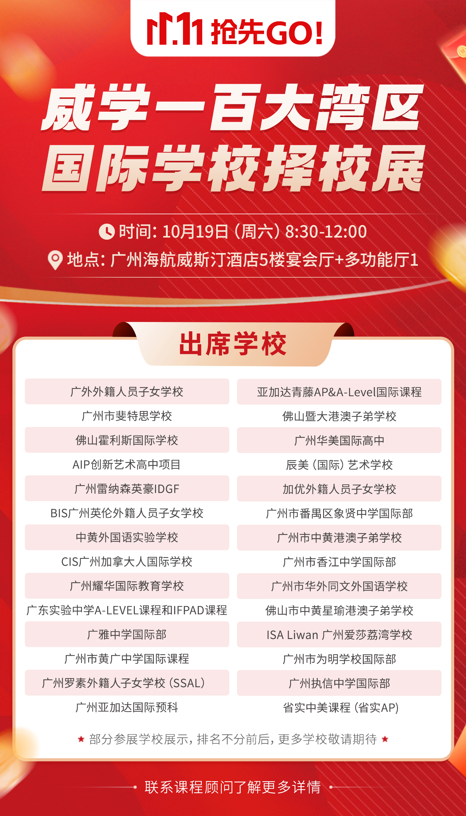 威學一百大灣區國際學校擇校展10月19日盛大開啟!多所熱門國際學校參展,一站式了解!快私我報名啦
