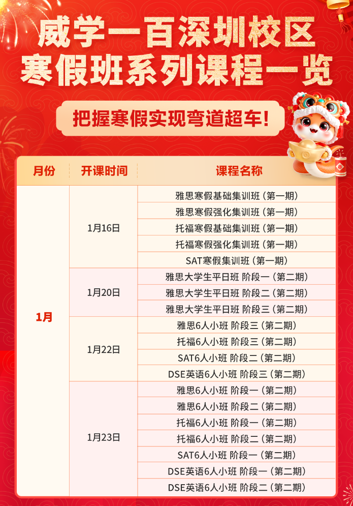 威學深圳校區寒假班課火熱報名中!涵蓋托福/雅思/SAT/DSE多種課程,想報名的同學抓緊啦