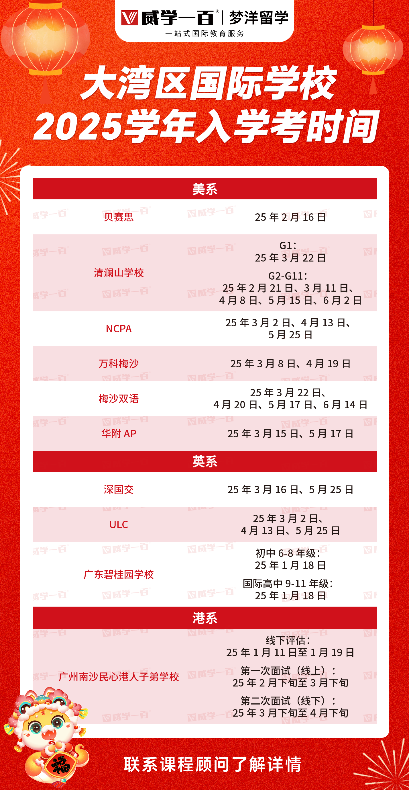 最新,2025學年大灣區國際學校入學考試時間匯總!不清楚如何高效備考?私我制定專屬方案~